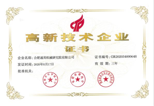 - 高新技術企業證書