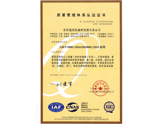 - 質量管理體系認證證書