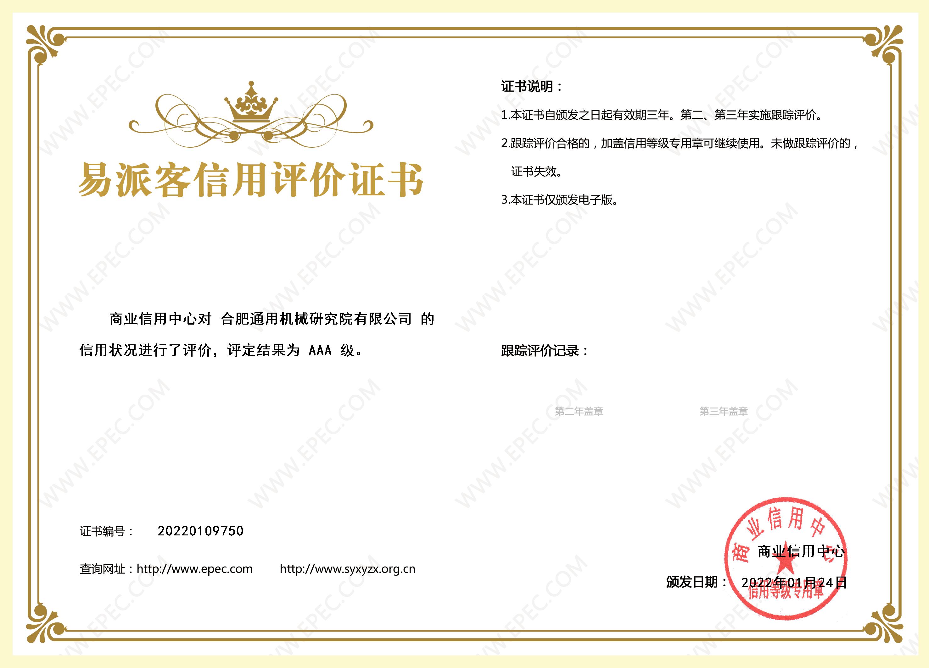 - 易派客信用評價證書(AAA級)