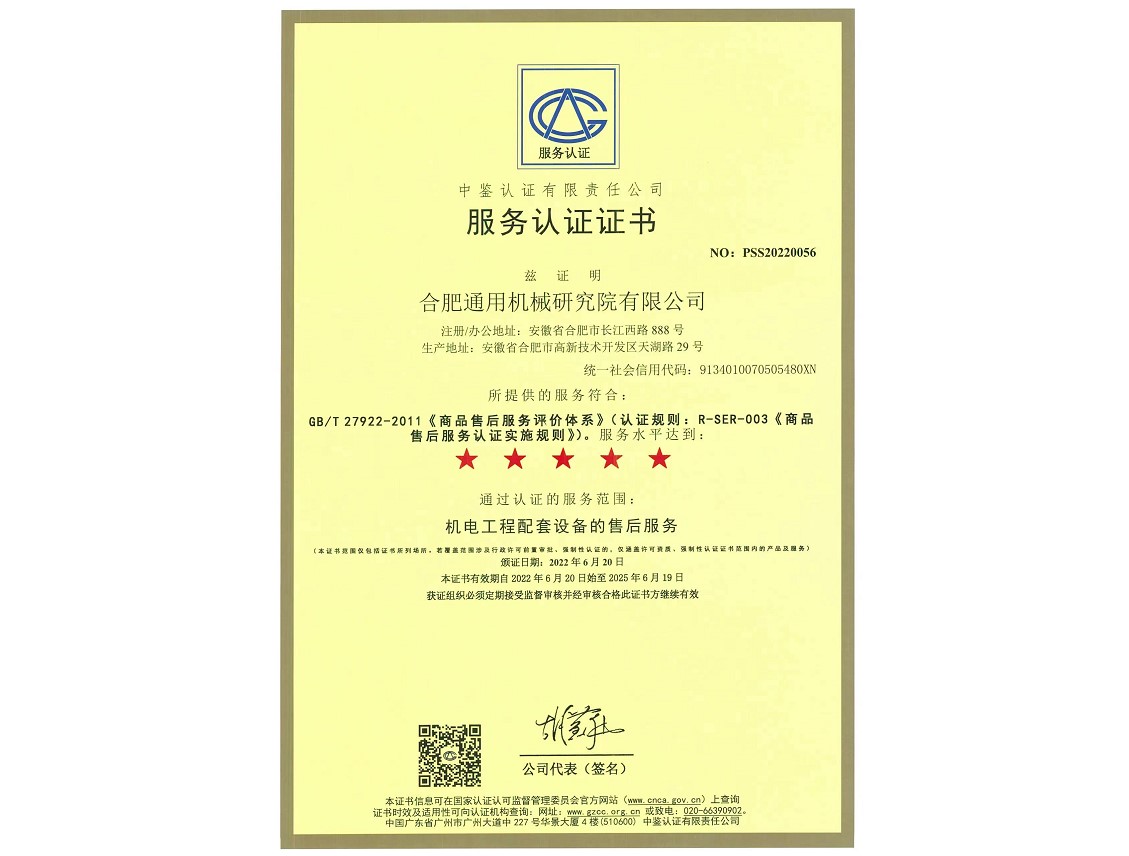 - 商品售后服務體系認證證書
